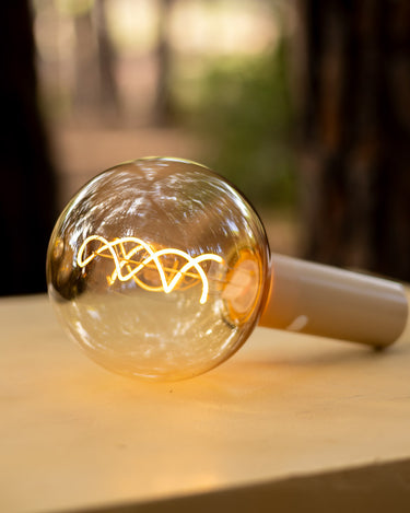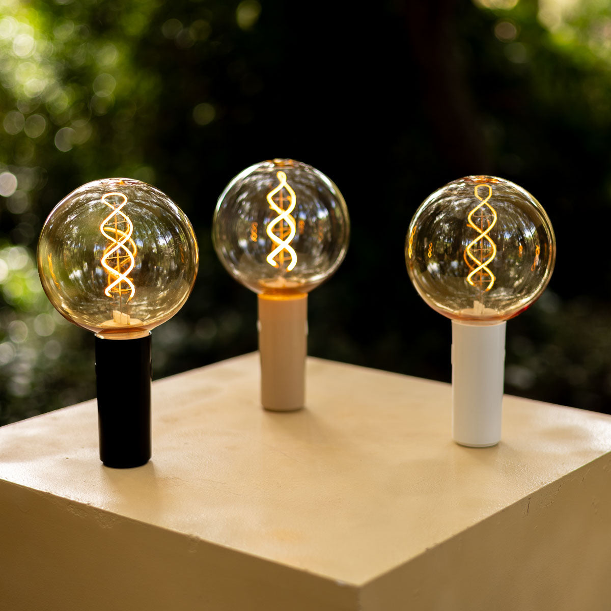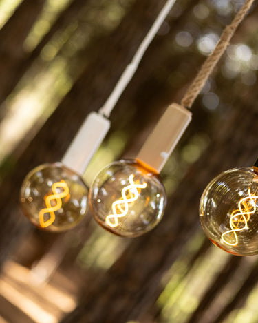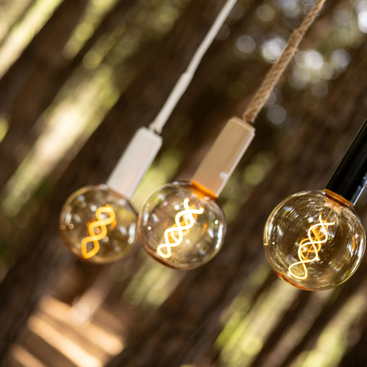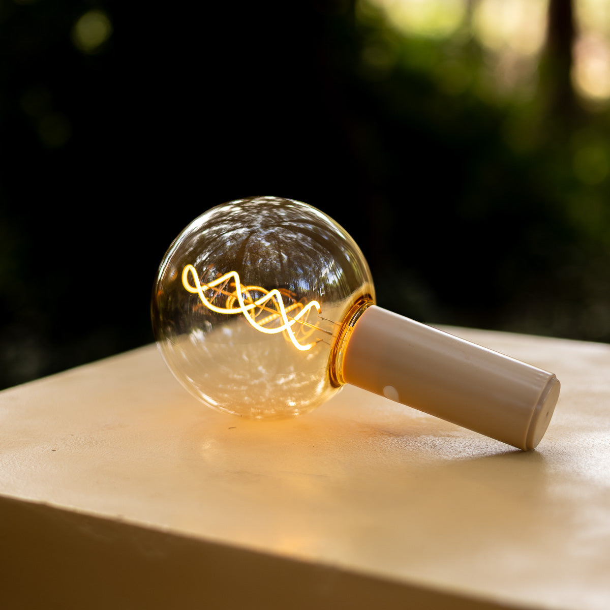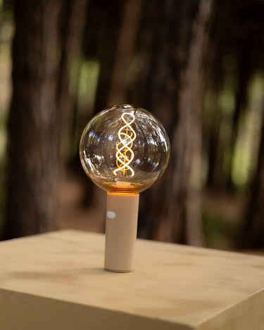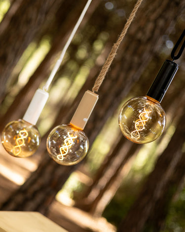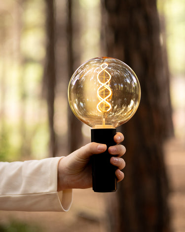 A lâmpada vintage portátil sem fio EDY G125 não requer instalação, basta pendurá-la ou aproximá-la de uma área metálica e ela aderirá devido à sua base magnética. Incorpora um filamento LED de alto brilho e o seu revestimento plástico que simula vidro fumado é altamente resistente, quase inquebrável. Inclui um gancho de metal para pendurar e uma corda de dois metros.