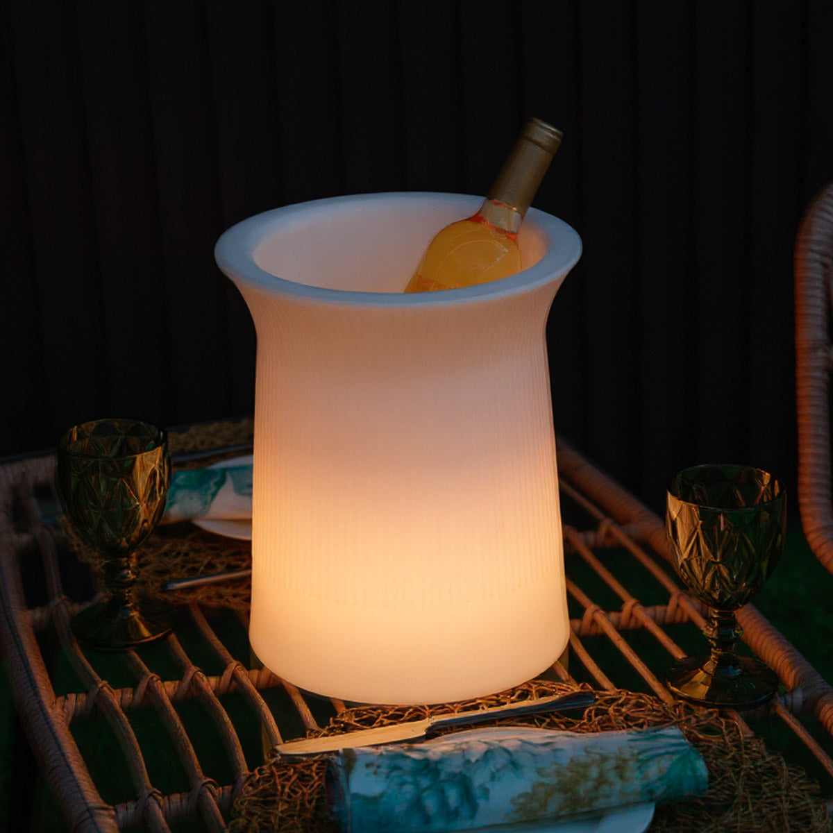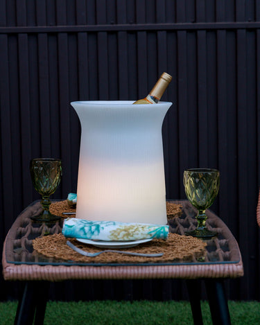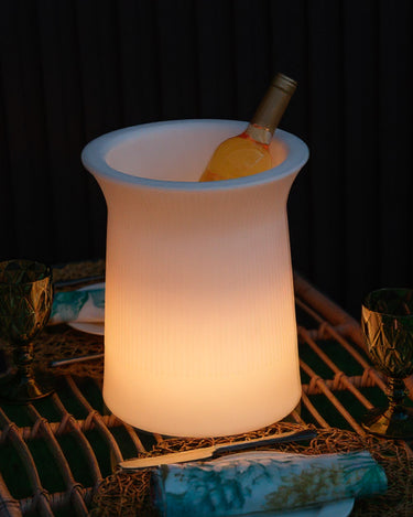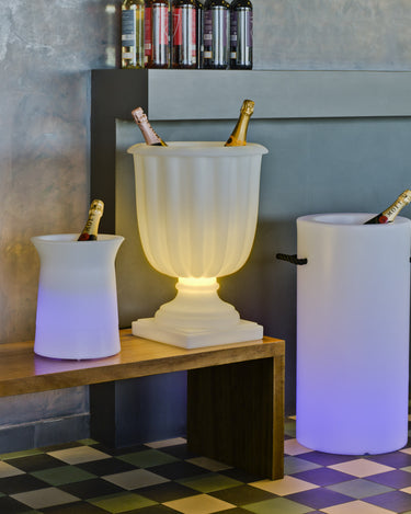 Equipada con luces RGB y luz blanco, esta cubitera te permite seleccionar entre una variedad de colores vibrantes para adaptarse a cualquier ocasión o ambiente. Su construcción de polietileno garantiza durabilidad y resistencia. Perfecta para fiestas, eventos al aire libre o simplemente para añadir un toque a tu hogar, esta cubitera LED es tanto funcional como estéticamente atractiva.