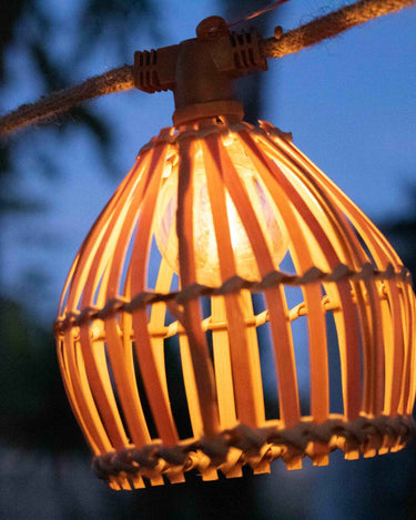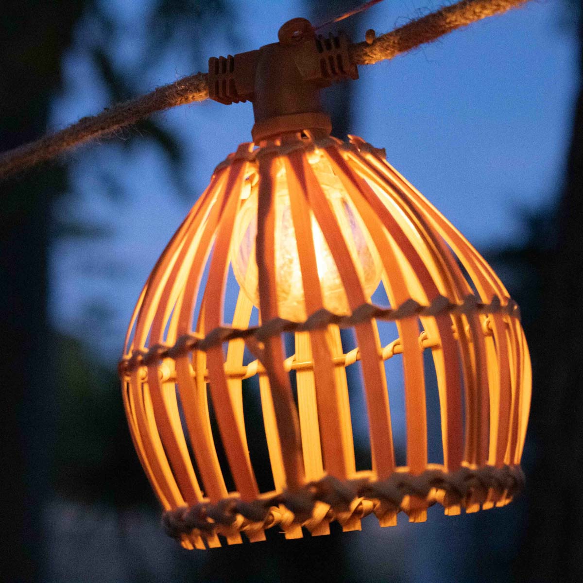 A LUCIA é uma grinalda com 8 metros de comprimento e 10 luminárias suspensas; esta peça transforma qualquer espaço num ambiente encantador e acolhedor.