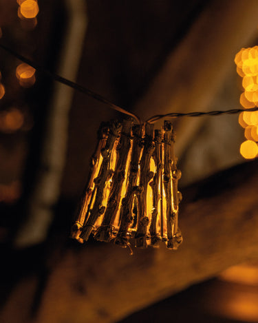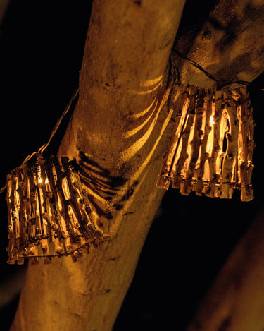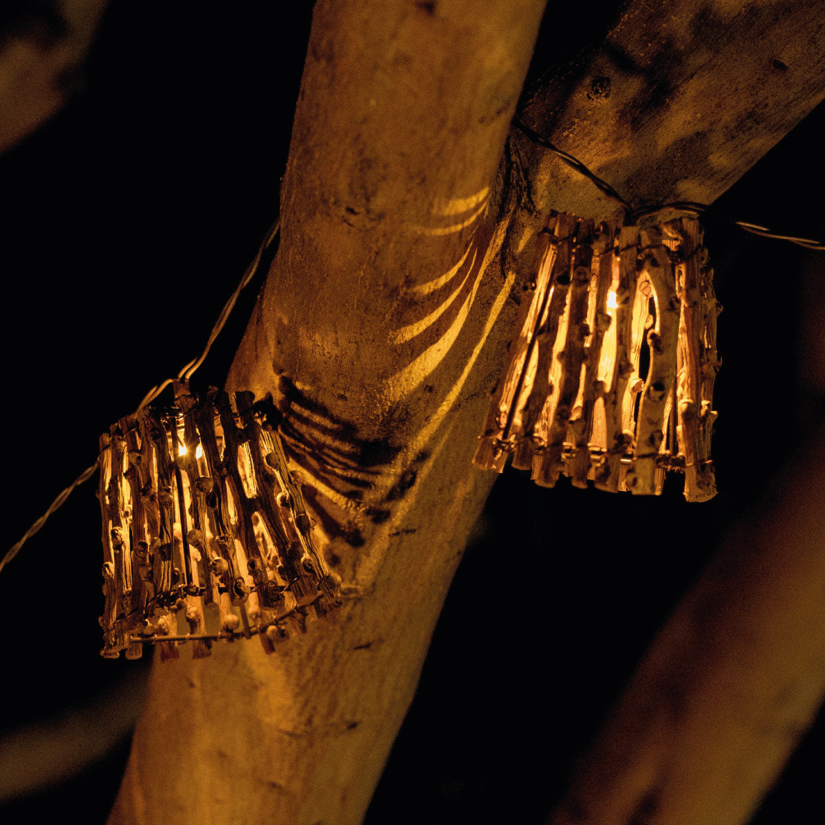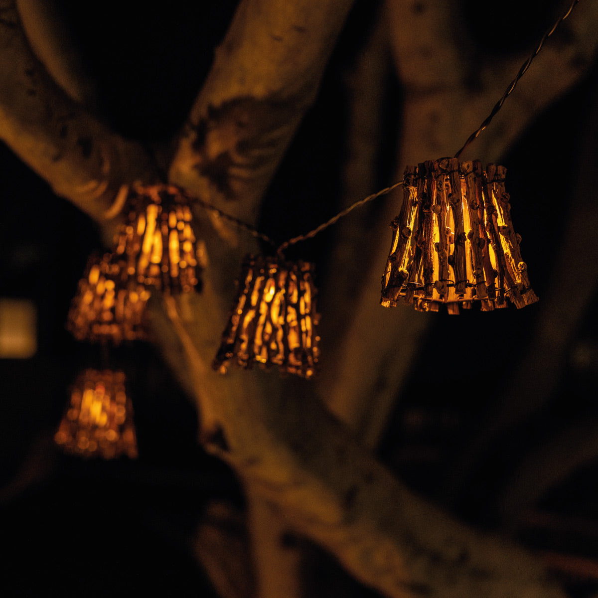 O equilíbrio entre naturalidade e inovação está na grinalda Carina. Com dez abajures cuidadosamente confecionados em madeira natural, fará da sua casa um lugar especial. Utilize-a tanto no jardim como na sala, pois é fabricada para ser utilizada tanto no interior como no exterior de casa. 10 lâmpadas LED integradas.