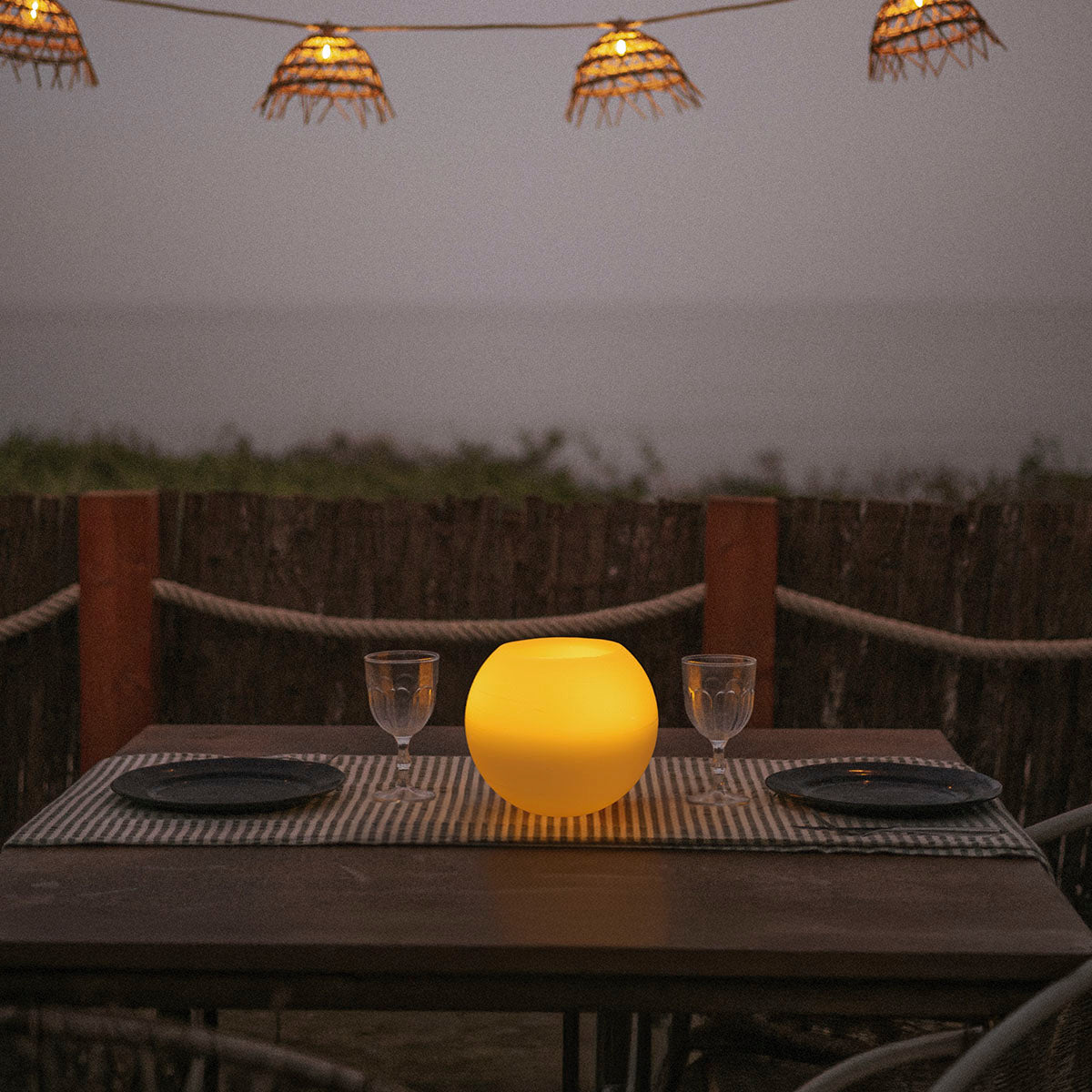 O candeeiro de mesa Dolo 20 Ball, da Newgarden, foi inspirado na estética das velas decorativas, reinterpretadas em formato esférico. Concebida para acrescentar um toque de estilo e sofisticação, cria ambientes acolhedores e convidativos, onde a luz se torna o ponto focal do espaço. É ideal para quem procura uma iluminação decorativa com efeito de vela e uma presença elegante, tanto em ambientes interiores como em áreas exteriores protegidas.