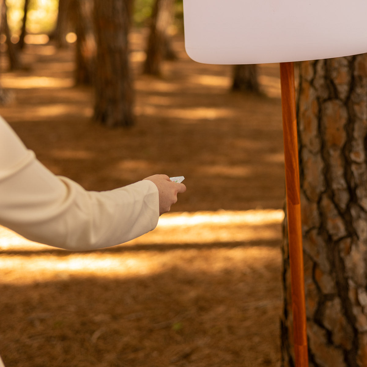 Chloe Plant é um candeeiro de pé original que pode ser usado para fixar em qualquer superfície como relva, areia da praia ou um vaso de flores. A base do candeeiro é ajustável, permitindo que seja facilmente alterada para diferentes alturas, tornando-o muito versátil, sendo um candeeiro perfeito para qualquer tipo de jardim, áreas exteriores ou empresas.