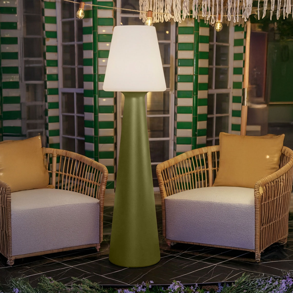 A silhueta elegante da família LOLA é mantida nesta versão POP, com um corpo disponível em seis cores vibrantes que acrescentam personalidade e carácter a qualquer ambiente. O seu design contemporâneo, inspirado no Mediterrâneo, faz da luminária uma peça decorativa, quer esteja acesa ou apagada. Graças ao seu acabamento em polietileno, oferece um aspeto uniforme e elegante que se adapta perfeitamente a espaços modernos, terraços sofisticados ou ambientes de hotelaria que procuram distinção visual.