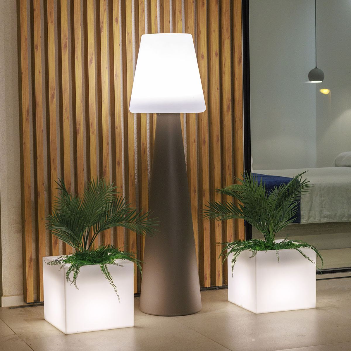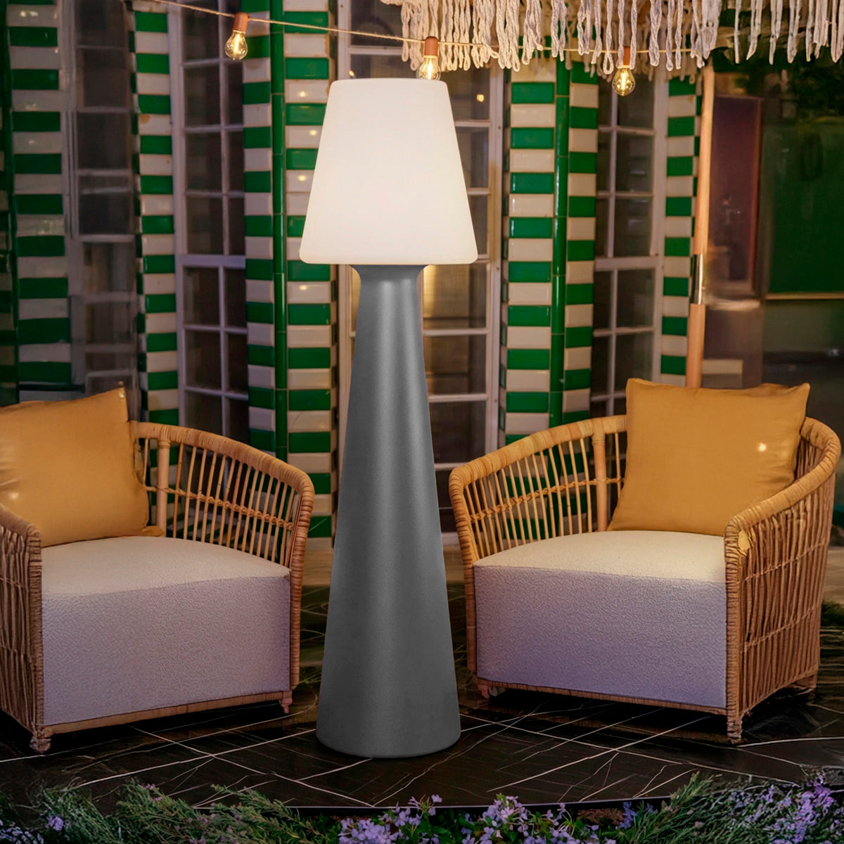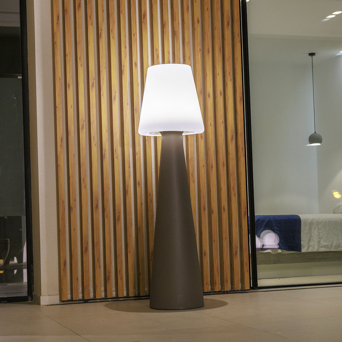 Este candeeiro de pé é ideal para jardins, pátios, varandas e zonas de piscina, bem como para restaurantes, hotéis e espaços para eventos que necessitem de iluminação ambiente sem instalação fixa. Pode também ser utilizado em interiores modernos, salas de estar ou zonas de relaxamento onde se pretenda acrescentar uma fonte de luz decorativa com personalidade. O seu design sem fios permite movê-lo livremente para se adaptar às necessidades do espaço.