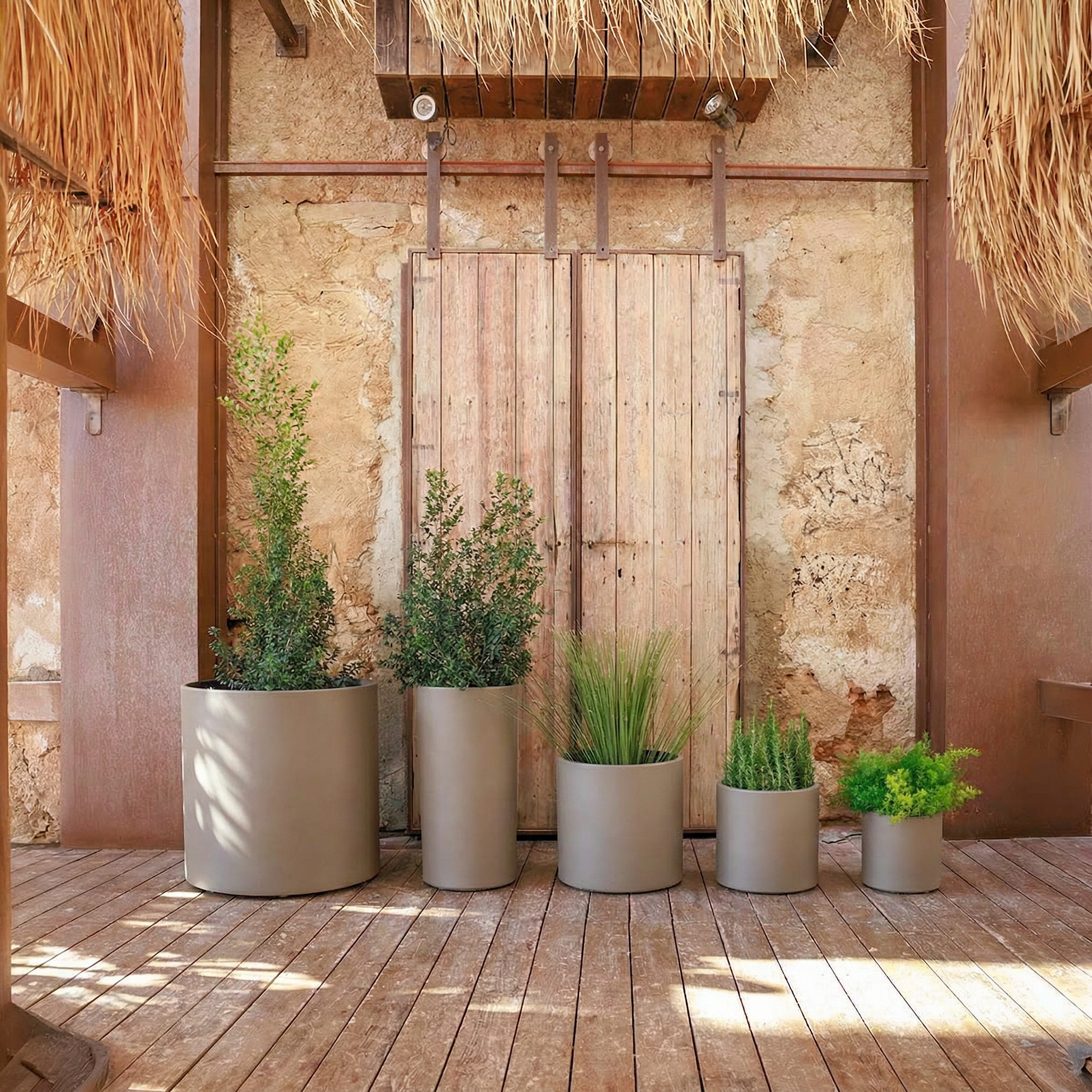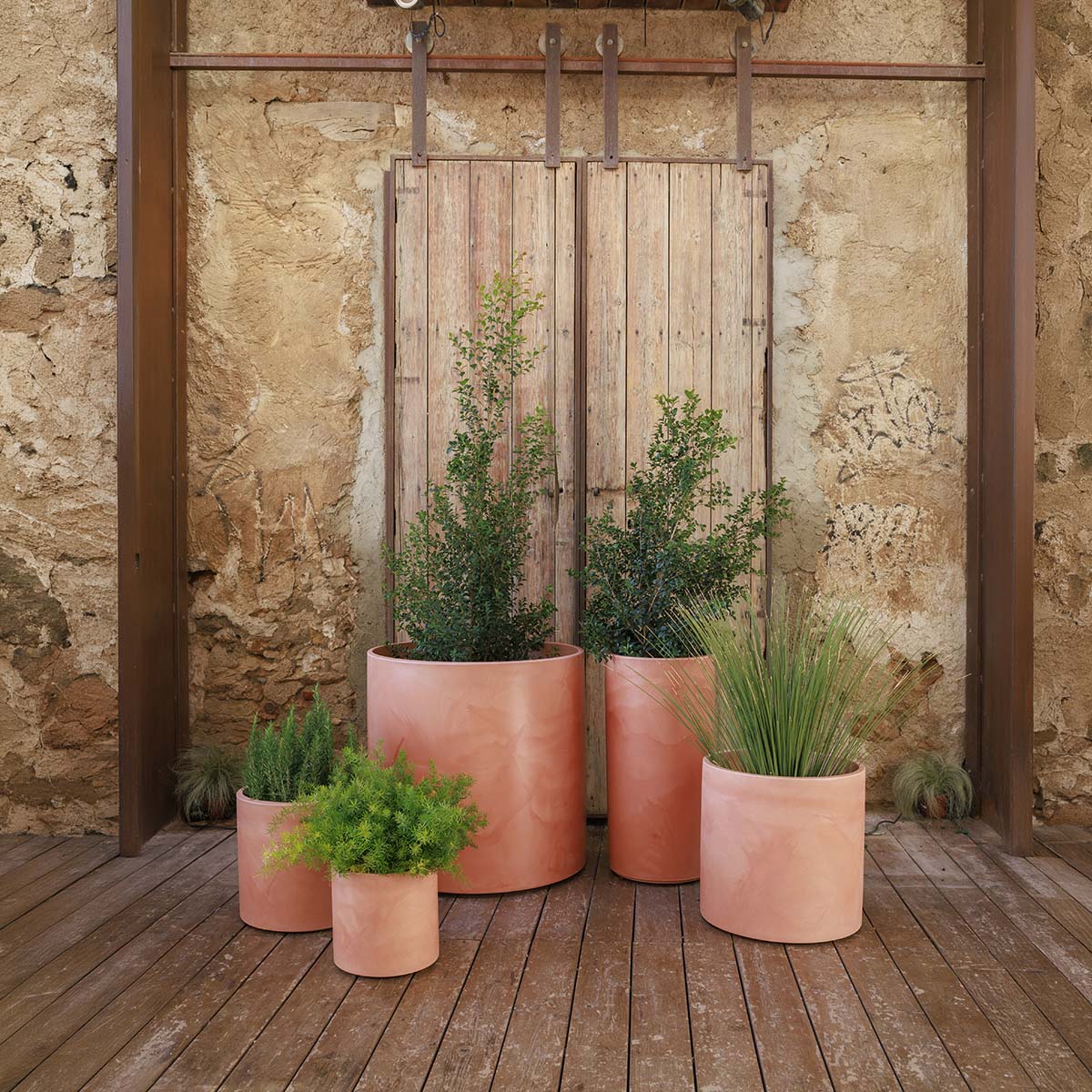 HORTENSIA 30 (ø30x 30 cm): Hortensia é uma das novidades da linha de vasos da Newgarden. É uma floreira redonda com uma grande base de plantação, linhas arredondadas e textura em acabamento liso.