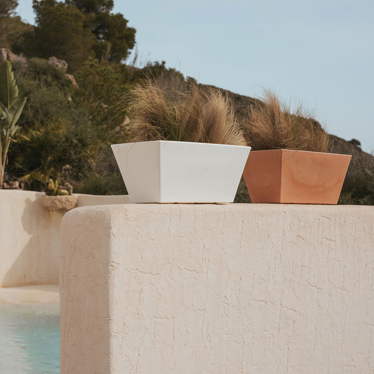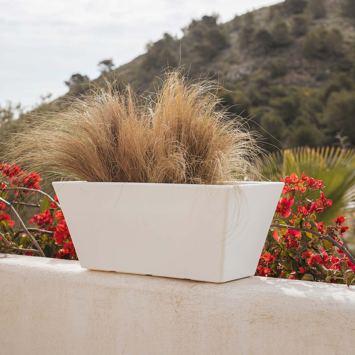 Jazmin 80 (80x37x37 cm) é uma floreira retangular e trapezoidal. Disponível em vários tamanhos e cores. Ideal para qualquer espaço exterior, terraços ou pátios.