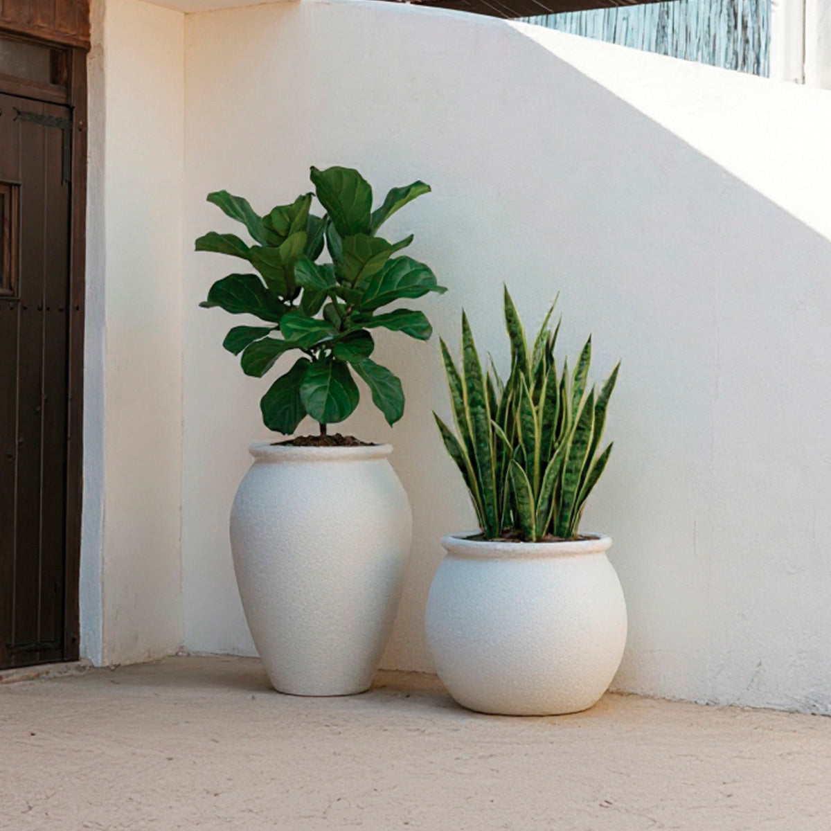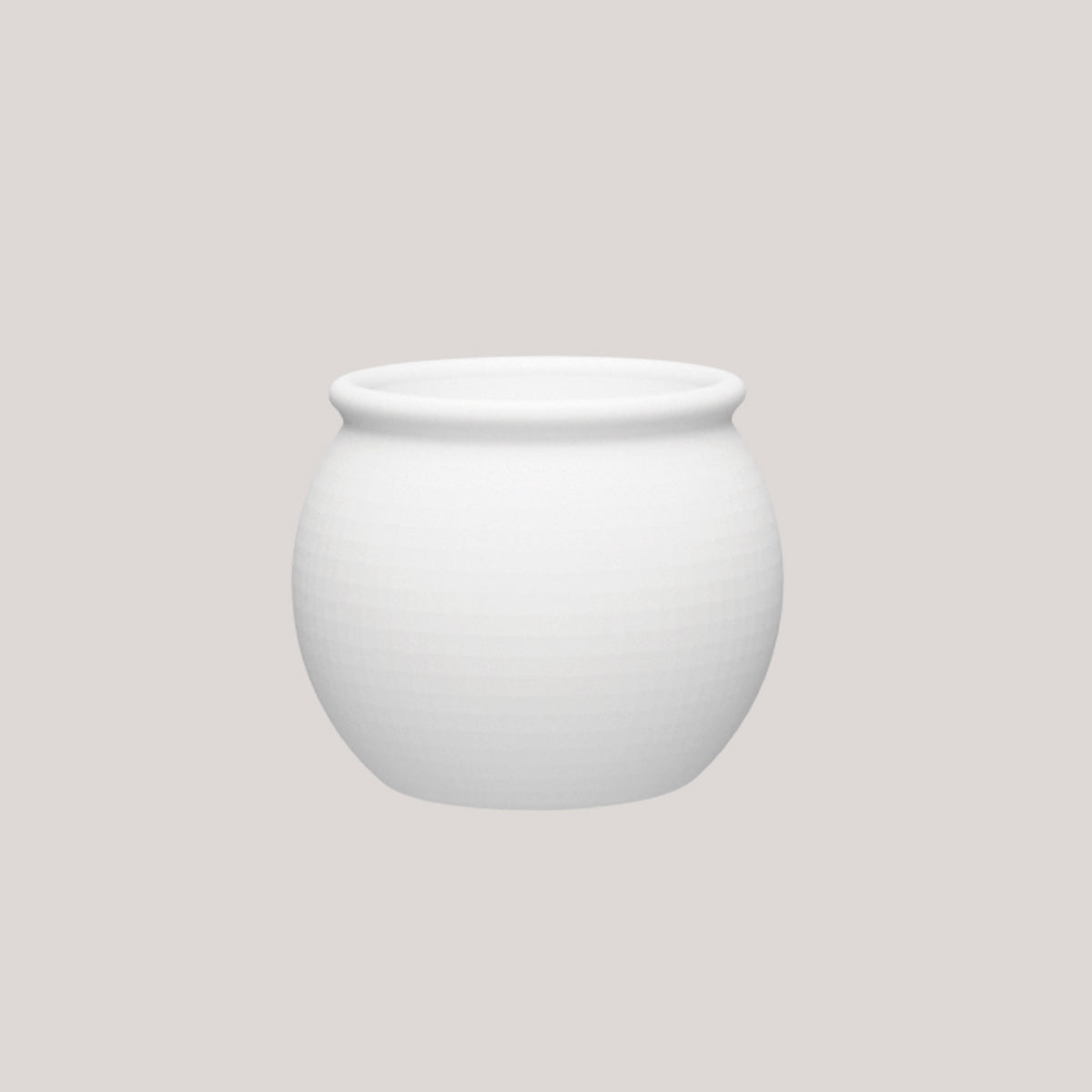 O vaso redondo na cor begónia tem uma base ideal para a plantação. Apresenta linhas arredondadas e um acabamento liso e texturado. Disponível nas cores branco e bege.